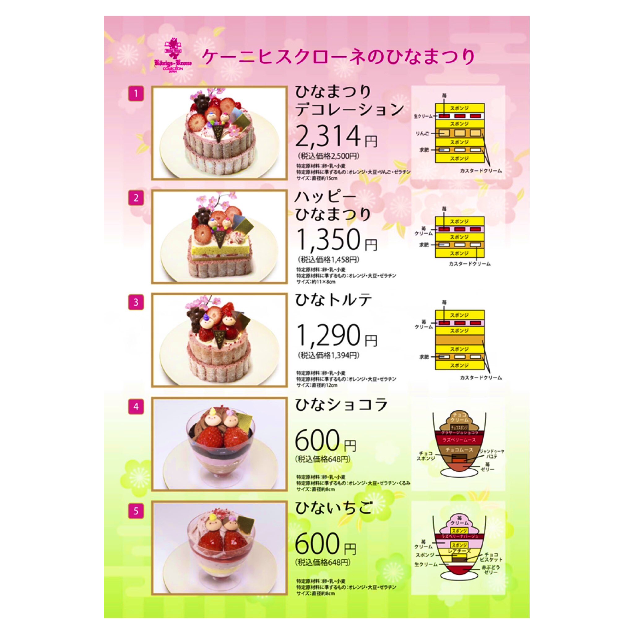 ケーニヒスクローネ 公式 ケーニヒスクローネ のひなまつり 今年はホールケーキ3種類にカップケーキ2種類をご用意致しております